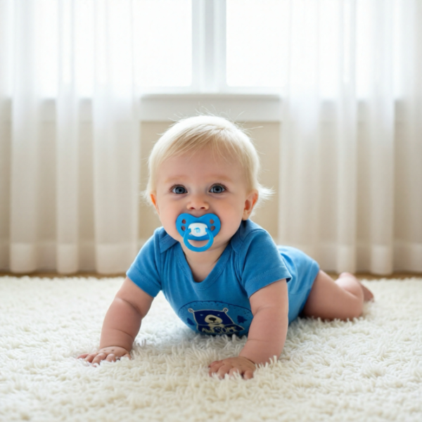 Design: Solid blue with an adorable bear graphic and the word "Awesome" in playful lettering